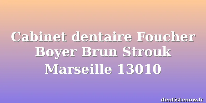 Les horaires peuvent ne pas être à jour. Contactez Cabinet dentaire Foucher Boyer Brun Strouk Marseille 13010 pour vous en assurer.