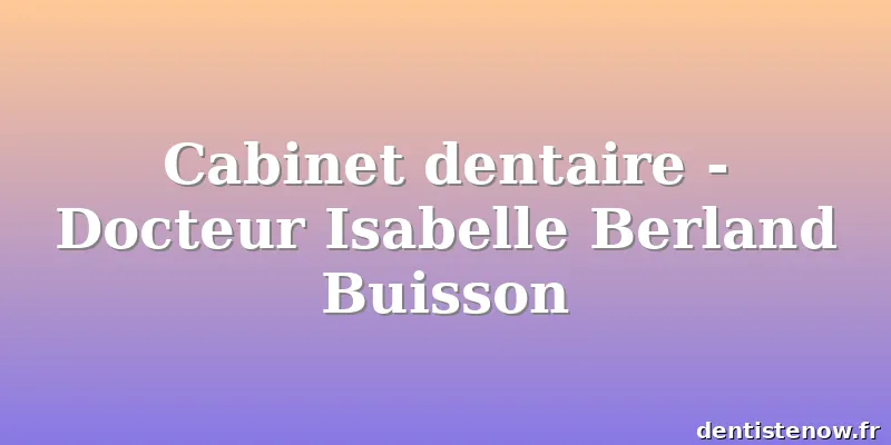 Les horaires peuvent ne pas être à jour. Contactez Cabinet dentaire - Docteur Isabelle Berland Buisson pour vous en assurer.
