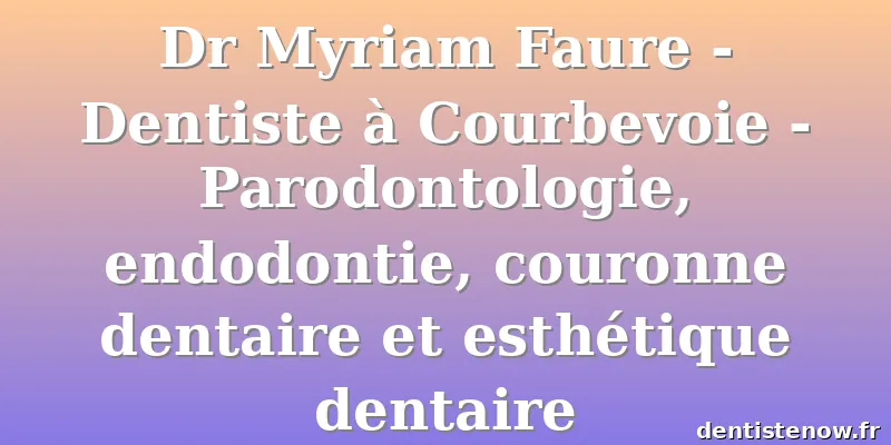 Dr. Myriam Faure - Cabinet Dentaire à Courbevoie