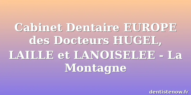 Les horaires peuvent ne pas être à jour. Contactez Cabinet Dentaire EUROPE des Docteurs HUGEL, LAILLE et LANOISELEE - La Montagne pour vous en assurer.