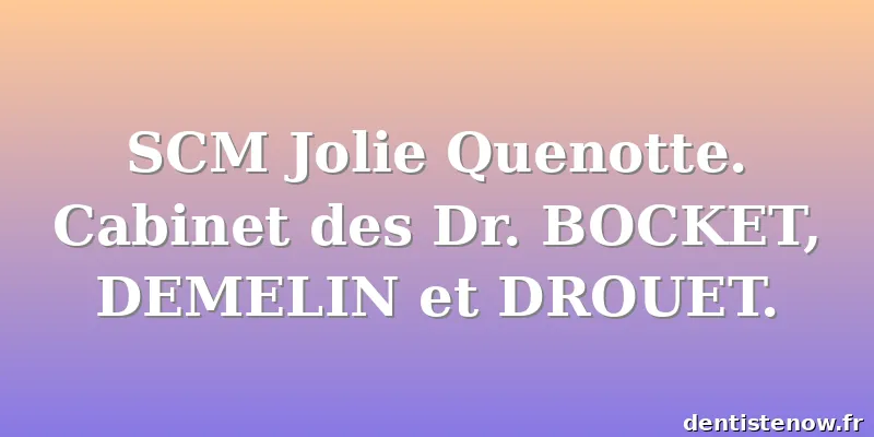 Les horaires peuvent ne pas être à jour. Contactez SCM Jolie Quenotte. Cabinet des Dr. BOCKET, DEMELIN et DROUET. pour vous en assurer.
