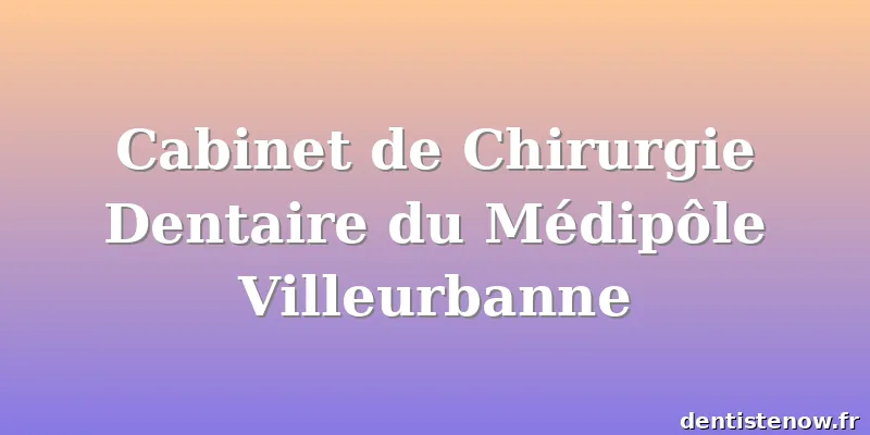Les horaires peuvent ne pas être à jour. Contactez Cabinet de Chirurgie Dentaire du Médipôle Villeurbanne pour vous en assurer.